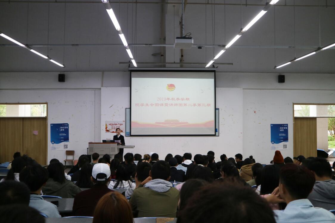 10月26日,由院团委主办的院学生会团课暨讲师团第二季第三期在青年路校区图阶102举行。院团委学生副书记(兼职)张艳琳、院学生会全体干部、干事等300多人参与学习。