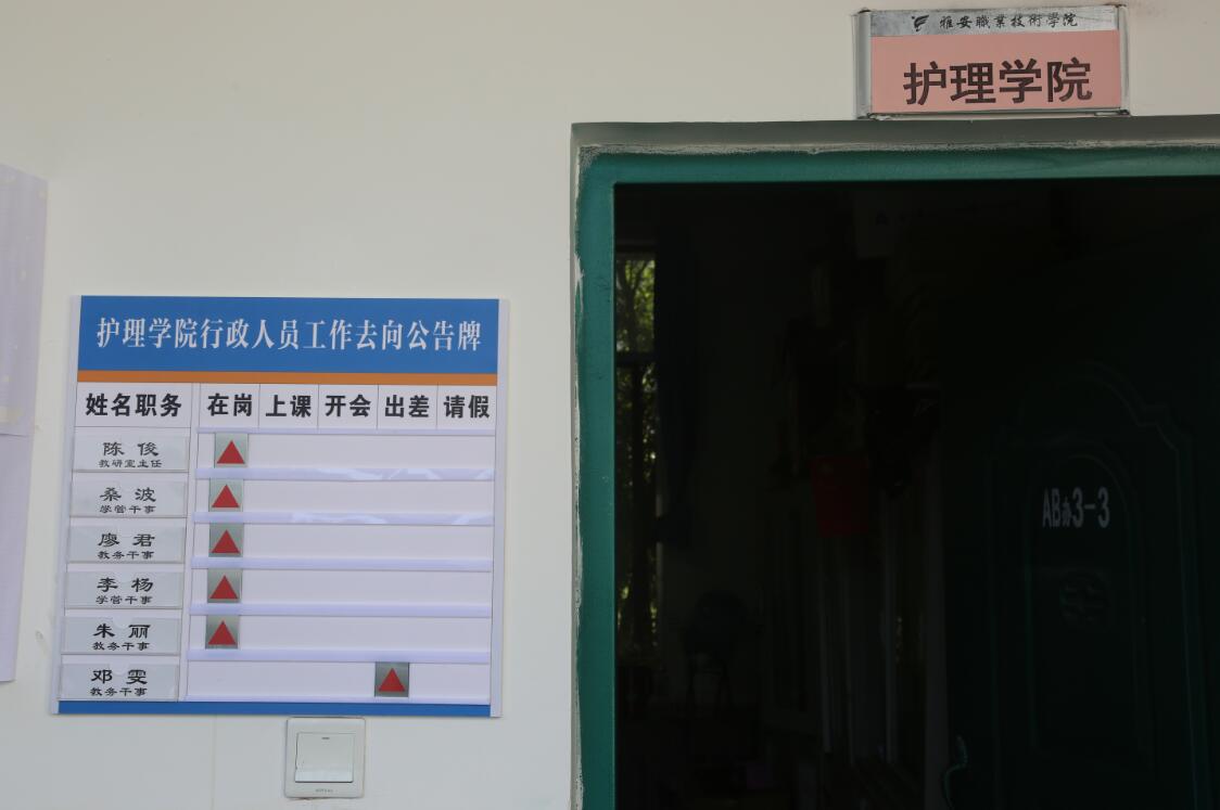 为进一步贯彻落实“不忘初心,牢记使命”主题教育活动总要求,结合实际工作找差距,抓落实,护理学院党总支开展党员干部“亮身份、明去向、树形象”活动。党员干部工位摆放身份牌,向师生亮明身份;办公区域外安装工作去向公告牌,明确工作状态及去向,为前来办事的师生提供便利。同时,组织全院教职员工开展师德师风讨论及教师礼仪培训,教育党员干部坚守立德树人初心,树立良好教师形象。