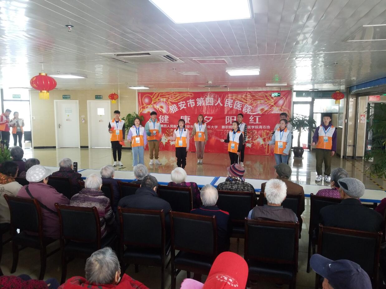志愿者为老人们带来了合唱《我的中国心》、幽默小品《鬼子进村》、电子琴独奏《童年》。互动小游戏《爱的抱抱》,拉近了志愿者与老人的距离。一位90岁高龄老奶奶带来的歌曲《东方红》、两位护工阿姨即兴表演的广场舞《走天涯》更是让现场气氛高涨。随后,医院工作人员、老人、志愿者合唱的《我和我的祖国》,文艺活动后,志愿者在护工的陪同下与老人们下楼散步谈心,并为老人们宣讲雷锋故事及春季预防知识。