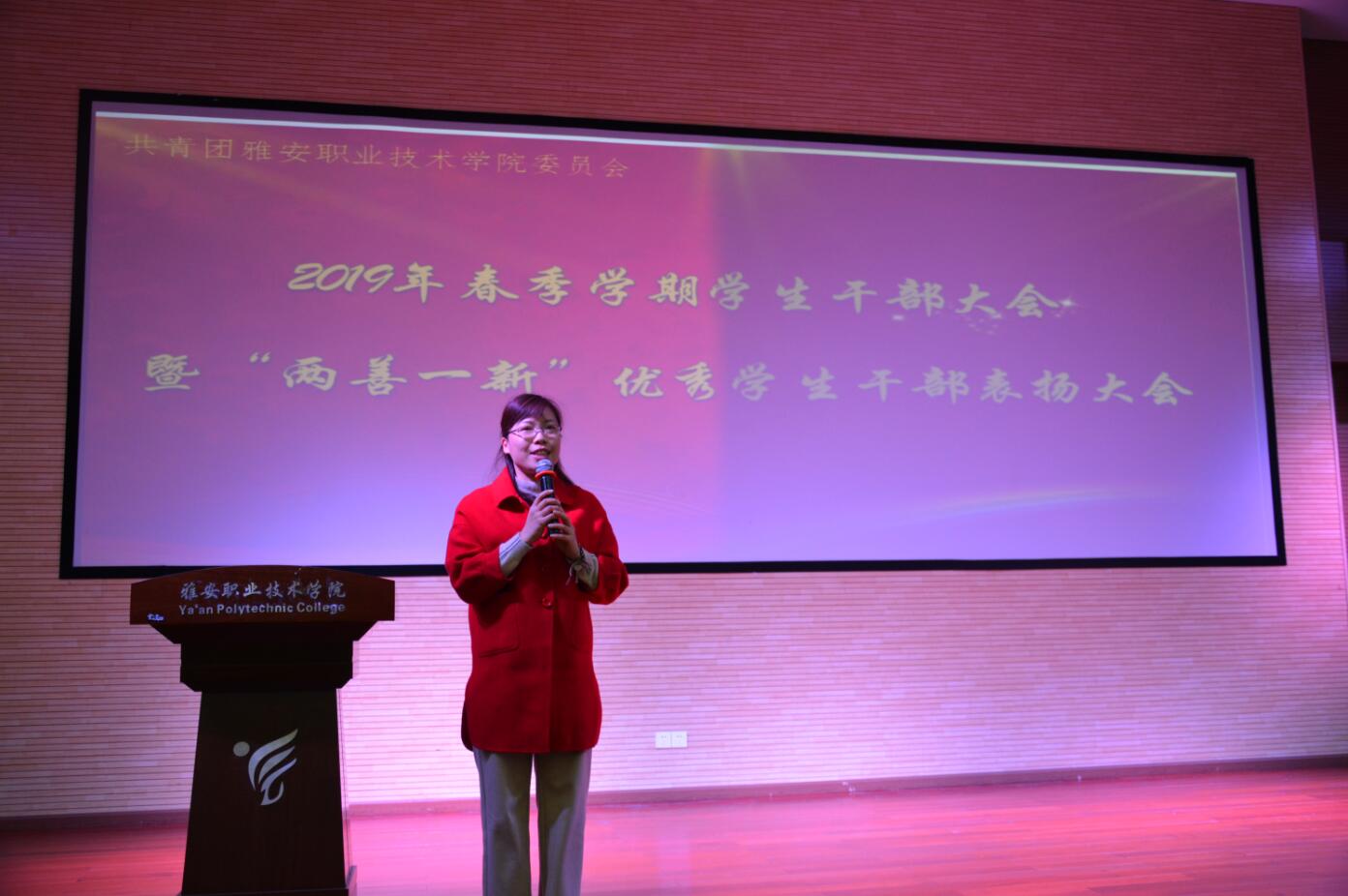 3月26日,2019年春季学期学生干部大会暨“两善一新”优秀学生干部表扬大会在青年路校区实验实训楼二楼多功能厅拉开帷幕,团委书记刘永恩、团委老师及150余名学生干部代表参加了活动。