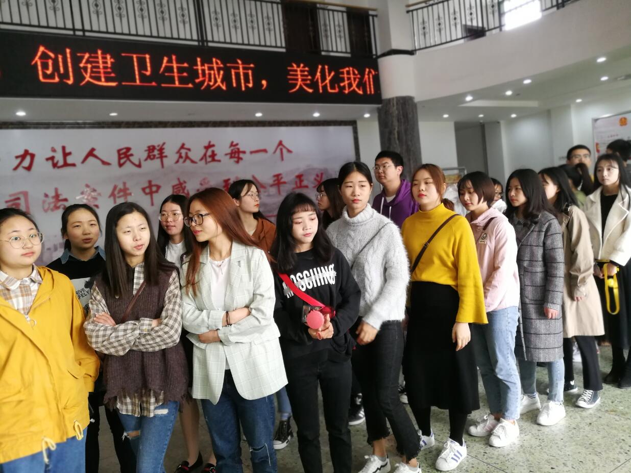 在法院工作人员的引导下,同学们参观了法院调解室、审判大厅、羁押室,并旁听一起贩卖毒品罪案件庭审全过程。