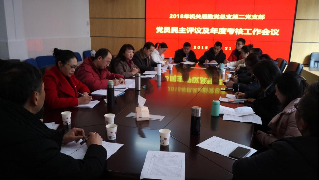 【本网讯】12月21日,机关后勤党总支第二党支部在青年路B207会议室召开专题组织生活会和年度考核工作会议,开展2018年度党组织书记抓党建述职评议、党员民主评议及年度考核工作。党委副书记付洪涛以上率下,以普通党员身份参加了会议。会议由支部书记洪松林主持。