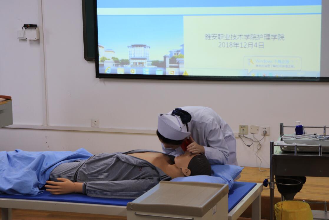 【本网讯】12月4日,beat365英国官方网站第十届护理技能大赛初赛在青年路校区实训楼6楼、7楼举行。许玉贤、向岚、黄蕾等十二位老师应邀出席并担任评委,50余名同学参加了本次比赛。
