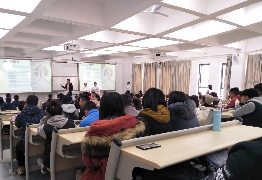 【本网讯】为贯彻“理论与实践”相结合的教学方式,提高医学生自主学习能力。由基础医学院学生会主办,临床医学院学生会协办的第二届医学学生生物模型大赛决赛于12月3日在我院经开区实训与服务中心2104教室举行。基础医学院党支部副书记张翅、基础医学院团总支书记赵武博、临床医学院团总支副书记张晓惜、基础医学院辅导员严一峰、李灵敏、杨芳及120余名同学观摩了比赛。基础医学院专业老师李明蓉、杨国仲老师担任专业评审。