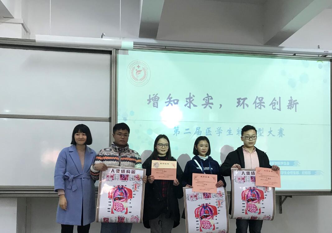 最终胆肝十二指肠切片模型拔得头筹获得一等奖,禽流感病毒模型和人体心脏模型二等奖,其余选手分获三等及优秀奖。本次大赛展现了我院学生不落窠臼的创造能力,进一步培养了医学生“增知求实,环保创新”的精神,激励着我院学子求真务实,不断创新进取!
