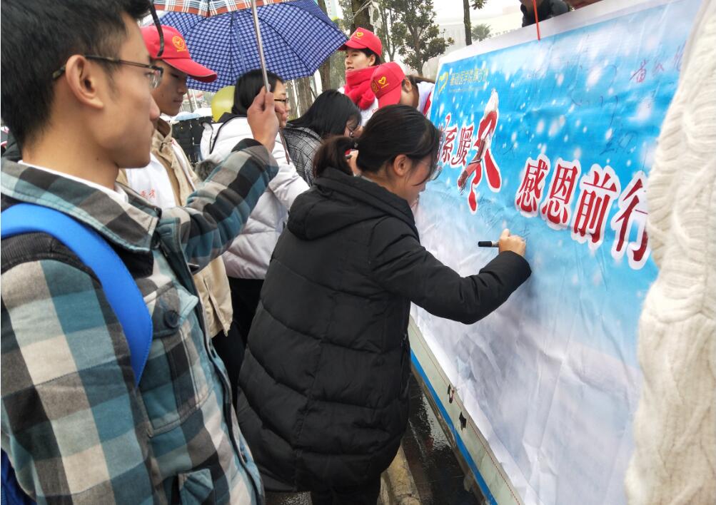 【本网讯】为弘扬中华民族传统美德,增强大学生感恩意识,倡导广大学生用实际行动践行感恩。11月26日,临床医学院青志协策划部部长方泽平带领19名志愿者,在经开区实训与服务中心食堂门口开展“冬日感恩传恩情”感恩主题活动,此次活动吸引了约200多名同学参与其中。