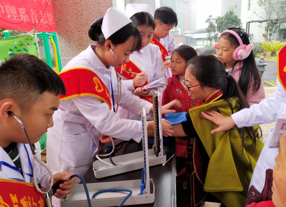 【本网讯】11月10上午,在党员志愿者殷显艳、张雪庆老师的带领下,护理学院青志协的志愿者们来到雅安汉都华府小区,开展了“为健康助航”为主题的义诊活动。