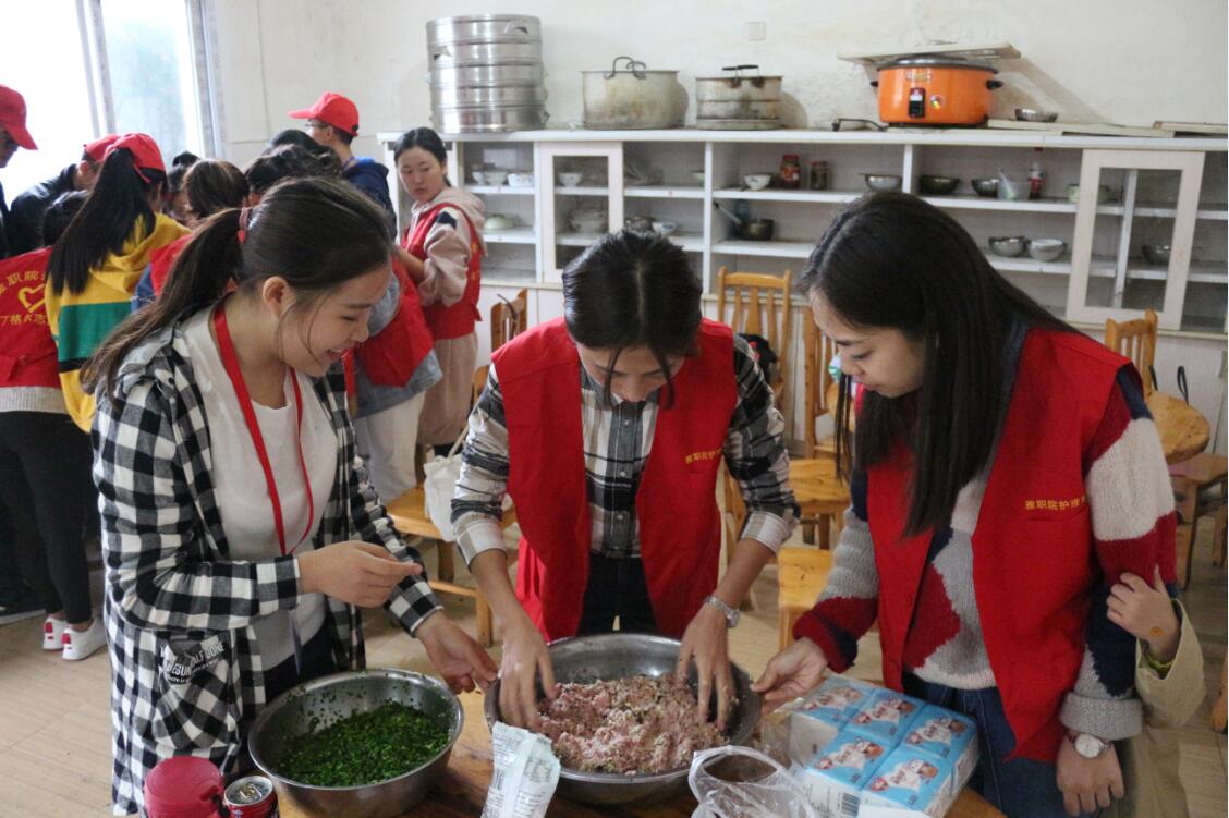 志愿活动分为三个部分:一是义诊,志愿者们为老人测量血压、血糖;二是健康宣教,老师用通俗易懂的语言向老人讲解必要的健康知识,并耐心解答老人们的提问。三是才艺表演,志愿者们精心排练的歌舞表演,给老人带去了欢乐。义诊的同时,部分志愿者在用心准备午餐,小小的饺子,简单的饭菜和水果饱含着暖暖的心意。最后,志愿者们陪老人聊天,老人们对志愿者们的表现表示肯定和感谢。