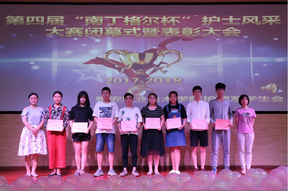 【本网讯】6月22日,护理系第四届“南丁格尔杯”护士风采大赛闭幕式暨表彰大会在青年路校区实验实训楼多功能厅顺利举行。护理系党支部书记姚婕、副书记李敏,团总支书记万黎、副书记吴玉阳,教师代表、学生代表200余人参加了大会。