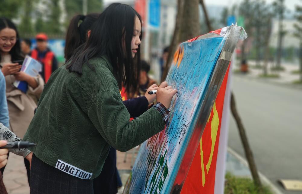 本次活动的主要内容是清扫校园。志愿者们统一着装,手拿清扫工具,仔细捡拾校园建筑物中隐藏在角落里的垃圾和落叶。随后,大家换上可爱的卡通人偶服装,向来往的同学们讲述爱护校园美丽环境从我做起的意义,同学们纷纷表示赞同,并在“雷锋精神我传承,校园环境共维护”签字版上签下自己的名字,以此表示自己的庄严承诺。
