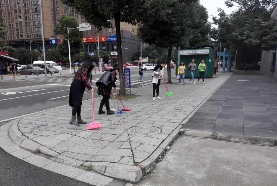 上午10:20,10余名老师带着清洁工具在青年路南校门集合,并迅速投入到了清扫工作中。大家分工协作,对和平路沿线及路边行人道上的落叶、烟头、垃圾袋、泥沙等进行了清扫。老师们通过辛勤劳动,用实际行动美化了街容街貌,为市民和师生营造了干净舒适的环境,也为保护美丽城市环境尽了绵薄之力。