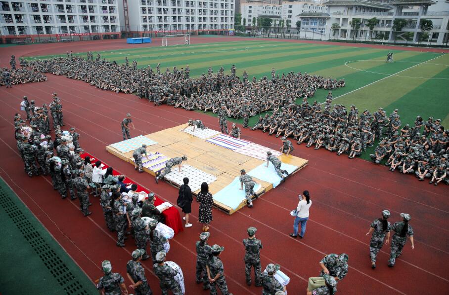 本次大赛以参训方阵为单位,通过初赛择优推荐四名学生参加决赛,随着一轮轮开始的哨声,参赛选手迅速行动使出铺平、压实、翻折、抠角、捏线等绝招,短短的5分钟,一床床整齐的“豆腐块”被子便呈现在训练场上。学院2017级新生将公寓“床铺”搬到了训练场上,热火朝天的比赛场面、整齐的豆腐块,将成为新生公寓生活难忘的风景线。