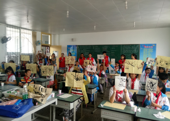 活动中,志愿者向小朋友们介绍了文房四宝和五大字体的特点,给他们分发了笔、墨、纸,引导他们认真地进行简单的书法写作。同时,教授他们怎么制作“吹墨画”,小朋友们一个个热情高涨,在纸上肆意发挥。最后,志愿者还向小朋友们讲解了中国结的特殊蕴意,并给他们送上了中国结。活动在小朋友们的欢呼声中落下帷幕。