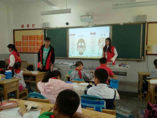 本次活动,志愿者们为汉碑慈济小学精心打造了中国书法、绘画、健康卫生知识3类趣味课堂。由张易,刘倩主讲的《中国书法》在四年级一班开展,他们将中华文字的魅力充分展现在同学们的眼前,同学们动手模仿各种字,并在模仿中领悟了中华文字的博大精深;李箐,史塞青主讲的《绘画》在四年级二班开展,各种图片不论古今中外都深深的吸引了同学们的眼球,听完志愿者的讲解,他们纷纷动手画起了自己喜欢的东西;邱万杭,张琼主讲的《健康卫生知识》在四年级三班开展,详细的健康知识让同学们意识到了健康卫生的重要性。讲解结束,志愿者们还向同学们分发了纪念品并拍照留念。