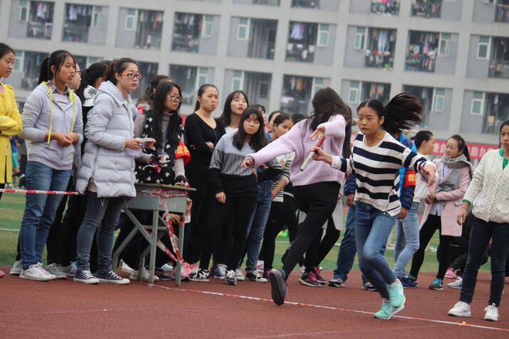 庄重的师范生宣誓仪式结束后迎来了教育系第三届冬季运动会。本次运动会以“我运动,我健康,我快乐”为主题,旨在让全体学生参与到运动会中,享受到运动的乐趣,让身心得到锻炼,让生活更加美好。此处运动会共设拔河、两人三脚、50米迎面接力、4*100米接力赛、篮球等团体和100米、400米、800米、羽毛球4个单项比赛项,约750余名运动员参赛。在为期两天的比赛过程中,运动员们团结协作、顽强拼搏;全体裁判员兢兢业业、公正裁决;全体工作人员热情周到、认真负责;志愿者们细致工作、维护赛场纪律和赛场安全,确保了本届运动会的圆满举行。