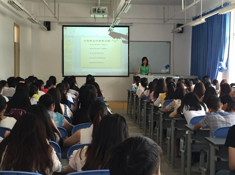 讲座中,王老师围绕“爱心、耐心、同理心、恒心、细心”五个方面,并结合自己的亲自经历、教学实例,就如何做一名小学生喜爱的班主任做了生动而全面的讲解。王老师形象生动的语言、经典的教学案例,深深地吸引了同学们 ,赢得了大家热烈的回应。这次培训会,让教育系即将去实习的2013级学生获得了经验,增添了信心。
