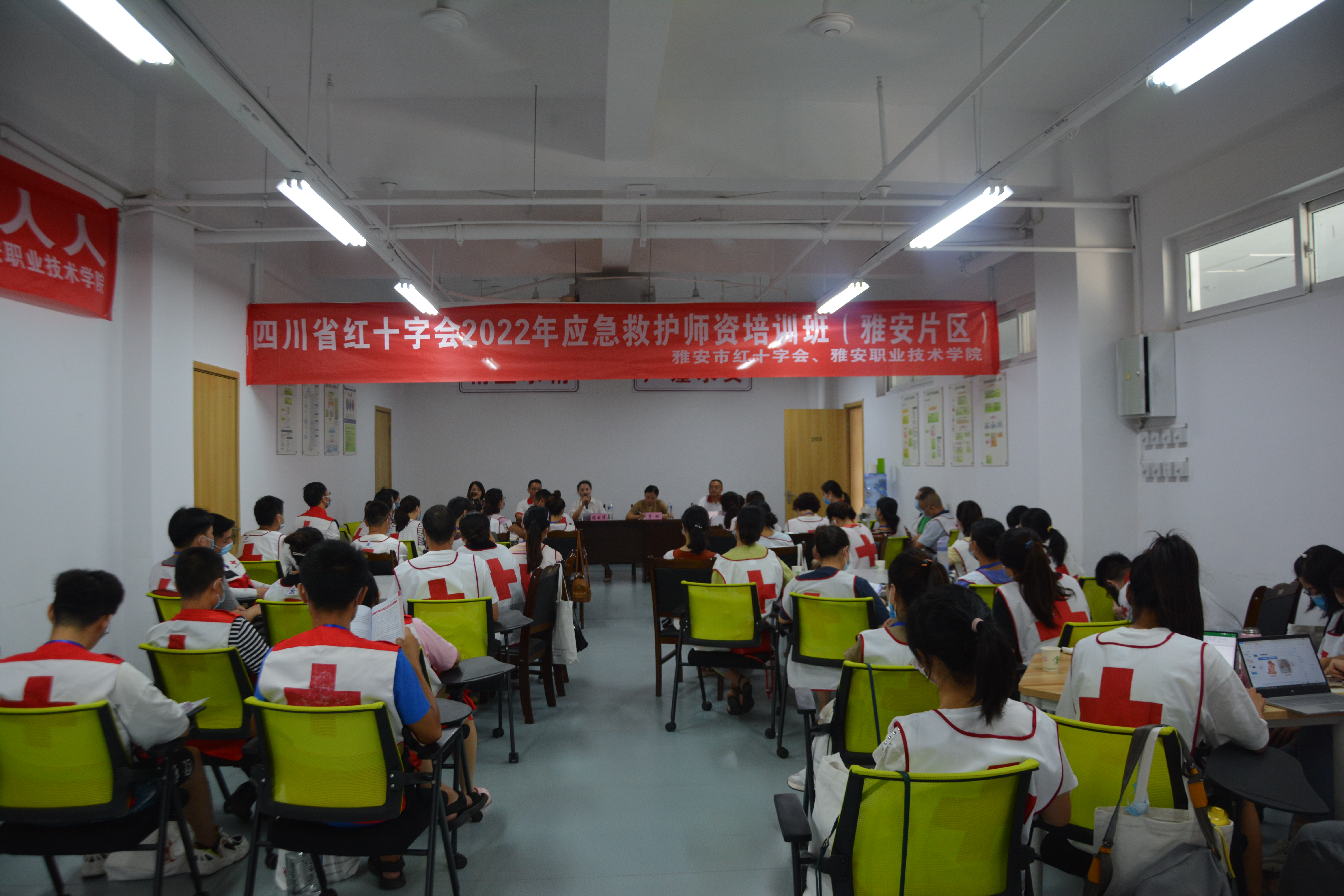开班仪式上,beat365英国官方网站继续教育与国际交流处处长李柚代表学院向参训学员表示热烈欢迎,并介绍了学院的情况以及学院学历教育与社会培训并重的一体两翼办学方针。雅安市红十字会常务副会长张云涛同志从红十字会的主要工作职责,开展应急救护培训的重要意义等方面作了讲话。