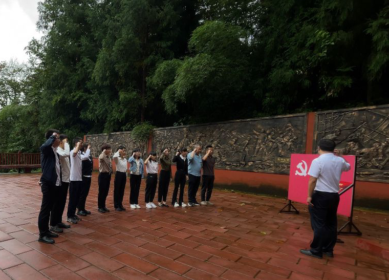 在胡长保烈士纪念广场上,党支部书记杨剑带领大家重温入党誓词,全体党员整齐列队,面向党旗,举起右拳,“我志愿加入中国共产党……”掷地有声、铿锵有力的誓言,使每名党员牢记自己的庄严承诺,不忘共产党员的初心和使命。
