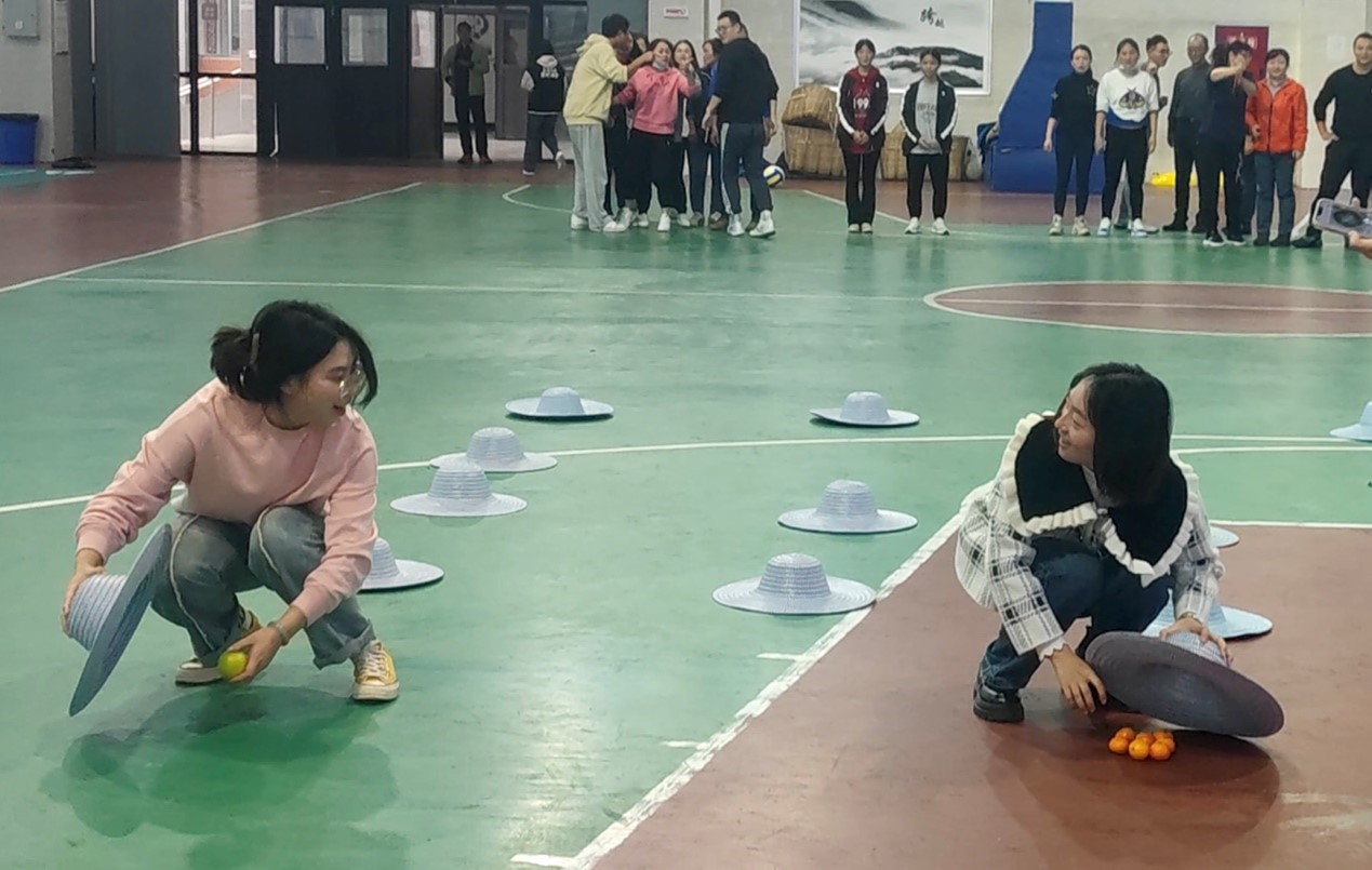本次活动由公共体育教研室教师进行总体设计, 2021级休闲体育专业同学现场辅助,共开展了破冰、鼓动人心、水果连连看三个项目,每个项目根据成绩进行积分,最终根据积分进行团队排名。