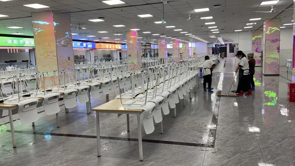 抓环境卫生治理,消杀不留死角。一是做好食堂前厅后厨日常消杀,各食堂驻场食品安全管理员对消杀情况进行严格监督;二是做好离场卫生整治,随着大多数学生离校,食堂经营档口陆续关闭。基建后勤处明确要求所有档口对各自操作间、售卖间环境卫生彻底清理消杀完毕方可歇业离开。