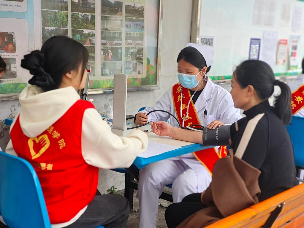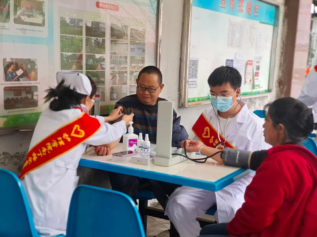 一部分志愿者为居民测量血糖、血压,并向居民普及健康知识,鼓励居民树立积极乐观的生活态度,养成健康的生活习惯;一部分志愿者清扫小区的卫生死角、捡拾道路及绿化带垃圾,清理楼道里堆积的各种杂物和小广告,引导群众爱清洁、讲卫生,形成健康良好的生活居住习惯,共建清洁美丽的幸福家园。