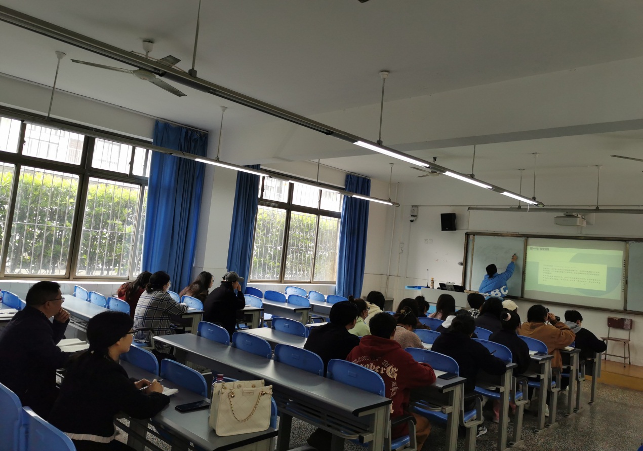 韦油亮一行在学院青年路校区随堂听取了3位教师的课堂讲授。在图书楼1005会议室查阅了学院返岗研修的相关文件、学员的教学设计、授课PPT、教学反思等试讲资料,并在会议室召开返岗教研检查座谈会。学院离退休工作处副处长邱平主持座谈会,人事处副处长洪松林、青年教师代表30余人参加座谈会。