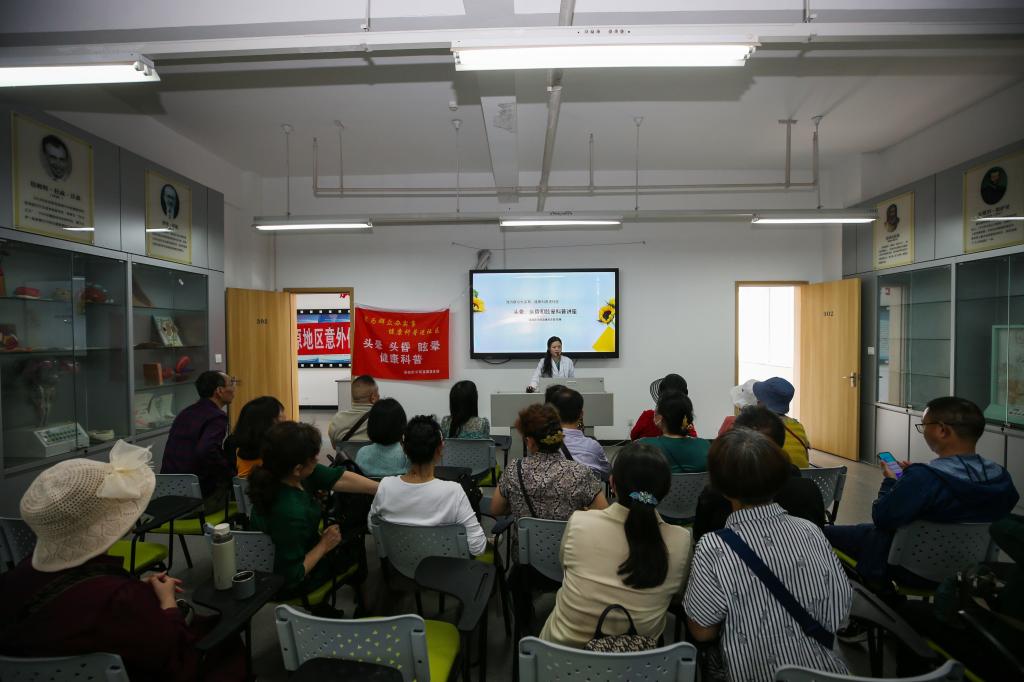 在 “头晕、头昏、眩晕”主题科普讲座中,基础医学院教师陈慧从头晕、头昏、眩晕的特点,慢性脑缺血发作,老年头晕、眩晕、平衡障碍的常见病因三个方面进行了详细讲解,并耐心细致的解答大家提出的问题。