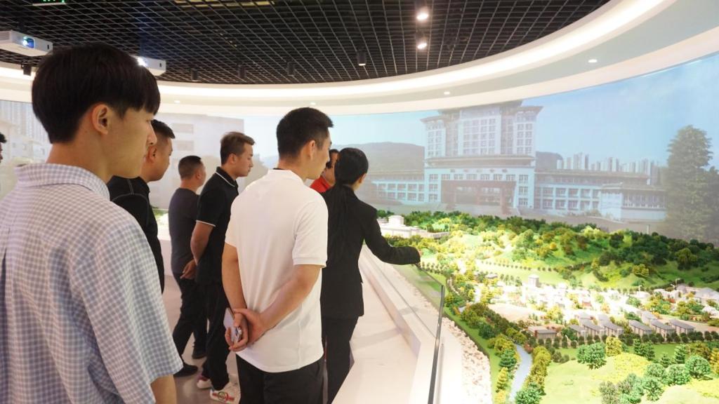 会前休闲体育专业负责人助理罗肖雷带领与会单位的负责人参观了学院校史馆及体育场馆,介绍了体育场馆建设及运营情况。