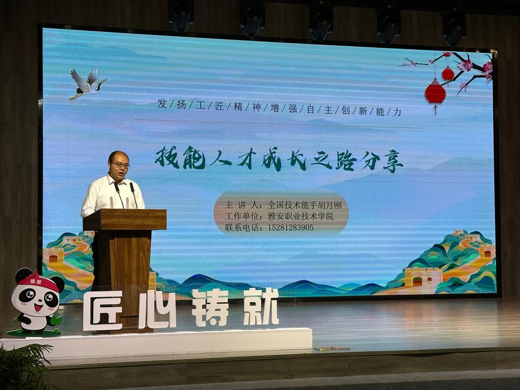 全国技术能手、第21届全国青年岗位能手、雅州工匠胡月刚从 “专业、专心、传承、创新”等方面诠释了“工匠精神”的内涵,通过自身案例,推心置腹地分享技能人才成长之路,用最朴实的语言娓娓道来“工匠精神”的核心。