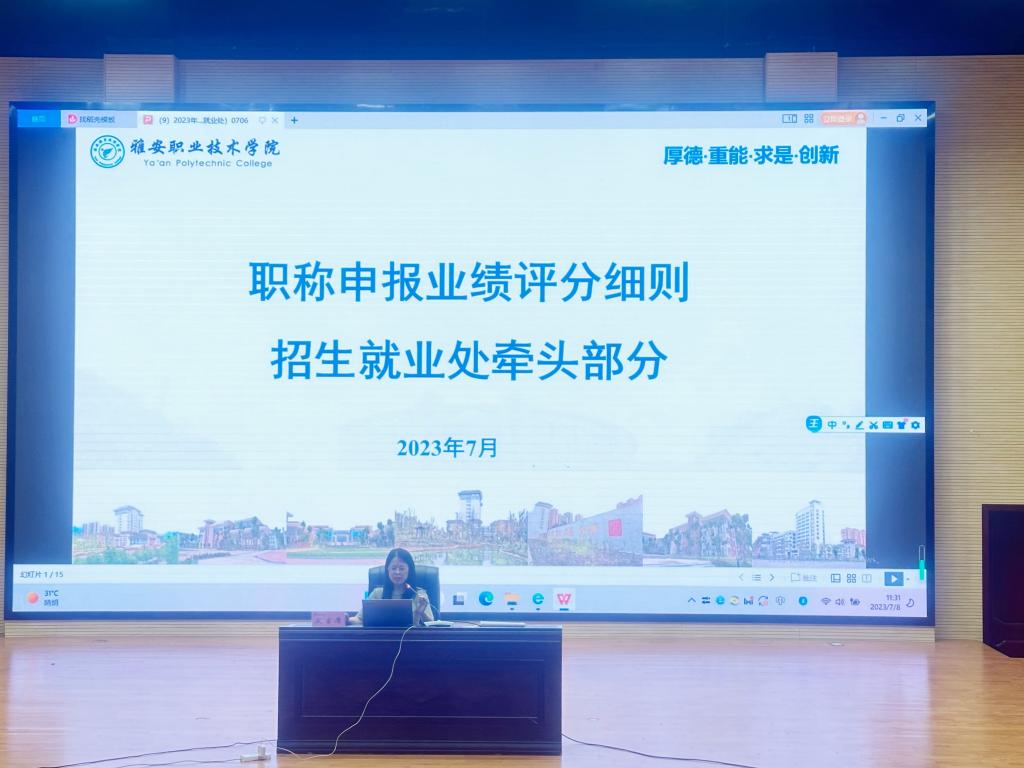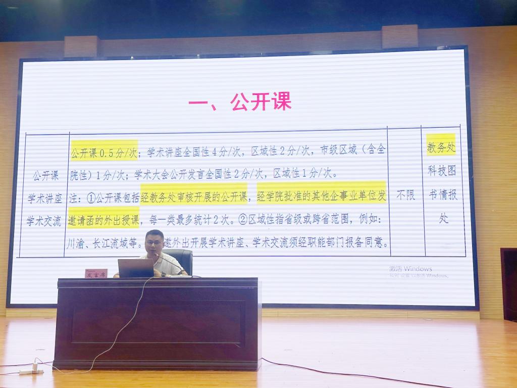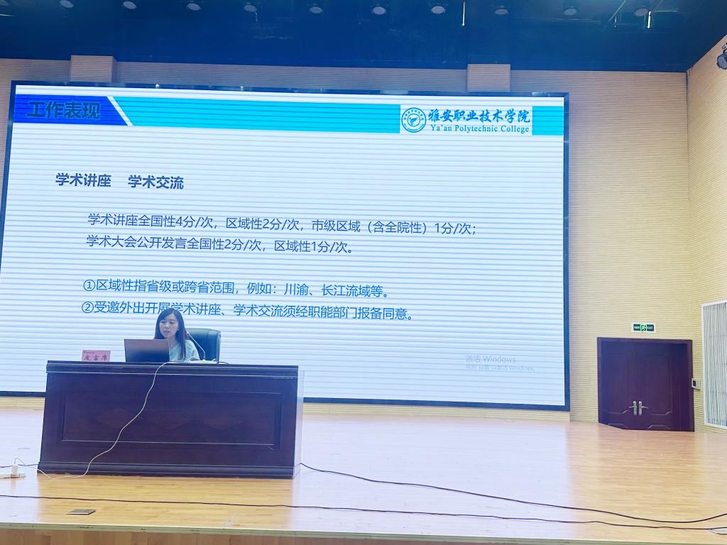 组织部副部长、人事处副处长杨梅专题解读了2023年学院印发的《职称评审办法》,对职称申报、评审、管理中的有关重点事项进行了着重说明。组织人事处、宣传统战部、教务处、科技图书情报处等9个职评办成员部门分别对业绩类型、认定标准、认定原则等做了现场培训。