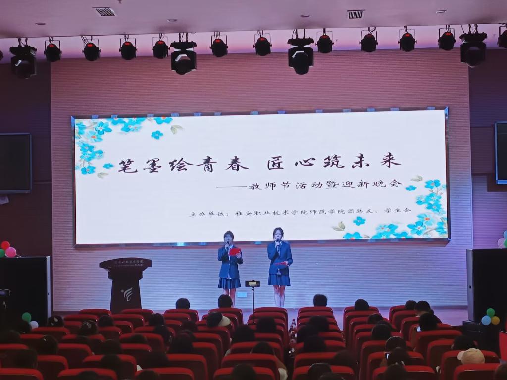 在2023级新生开启教师职业起点、庆祝第39个教师节之际,9月8日晚,“笔墨绘青春 匠心筑未来”第十六届师范生职业技能大赛活动总结暨2023级新生迎新晚会在青年路圆弧大厅举行。活动中,第十六届师范生职业技能大赛获奖者受到表彰,两名2022级同学为学弟学妹们分享了自己的学习方法和参赛心得。舞台上热情、精彩纷呈的表演表达了对新生同学的欢迎。随着四川省第十届大学生艺术展演活动一等奖作品《萱草花》悠扬的歌声响起,学生代表为老师们献上鲜花和亲手制作的贺卡。温馨又充满感动的活动氛围中,股股暖流在师生心中涌动,升华了对“教师”职业崇高的敬意。
