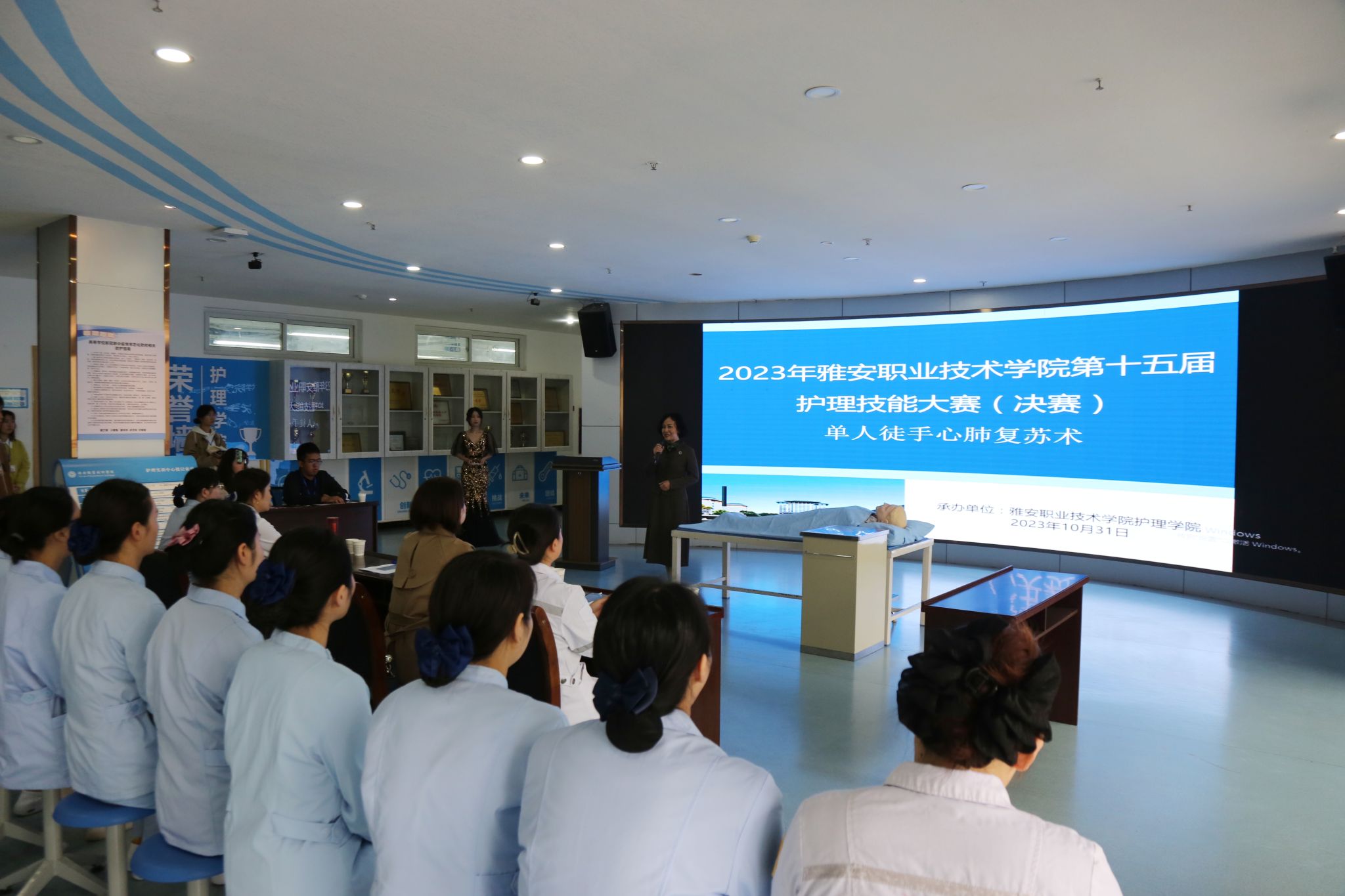 此次比赛不仅展示了选手娴熟的操作技能、良好的心理素质、各方面的综合能力,激发了学生的学习兴趣,提高了动手能力,也检验了学院护理专业教师的实践教学水平,达到了“以赛促教,以赛促学”的教学目的。