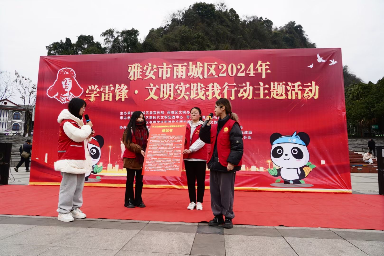 为了更好地弘扬雷锋精神,积极推动志愿服务活动高质量开展,3月5日下午,师范学院师生志愿服务队前往雅安市雨城区三雅园音乐广场,与四川农业大学青志协志愿服务队一起,参加了雅安市雨城区2024“学雷锋·文明实践我行动”主题活动年学习雷锋日主题活动。