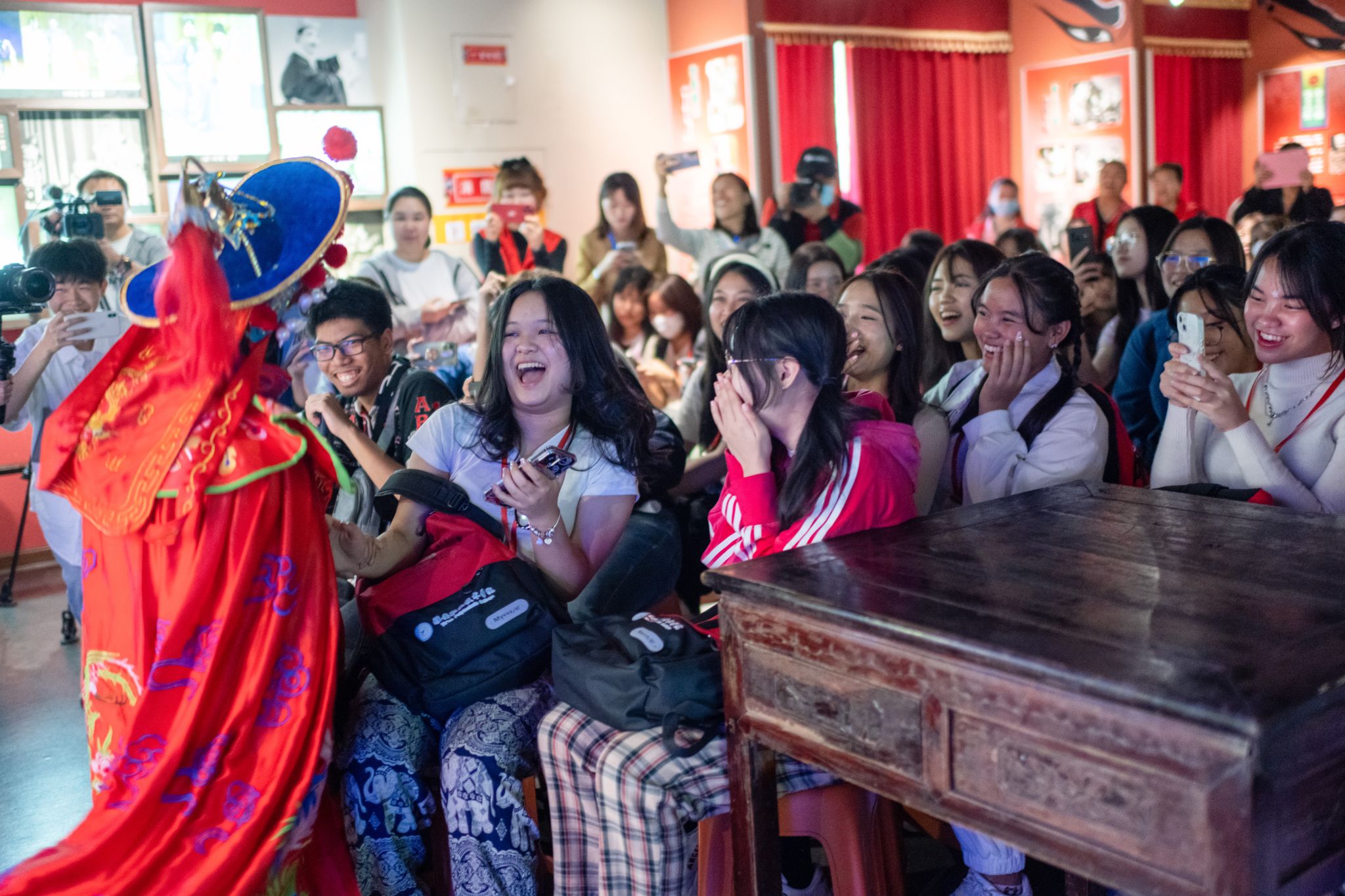 为进一步弘扬中华优秀传统文化,促进中泰友好交流,3月29日下午,学校组织泰国暖武里府北革中学汉语研学夏令营68名师生,在雅安川剧艺术博物馆开展了“中泰友好一家亲 共赏川剧话非遗”活动,让他们全方位、零距离、沉浸式领略川剧魅力。