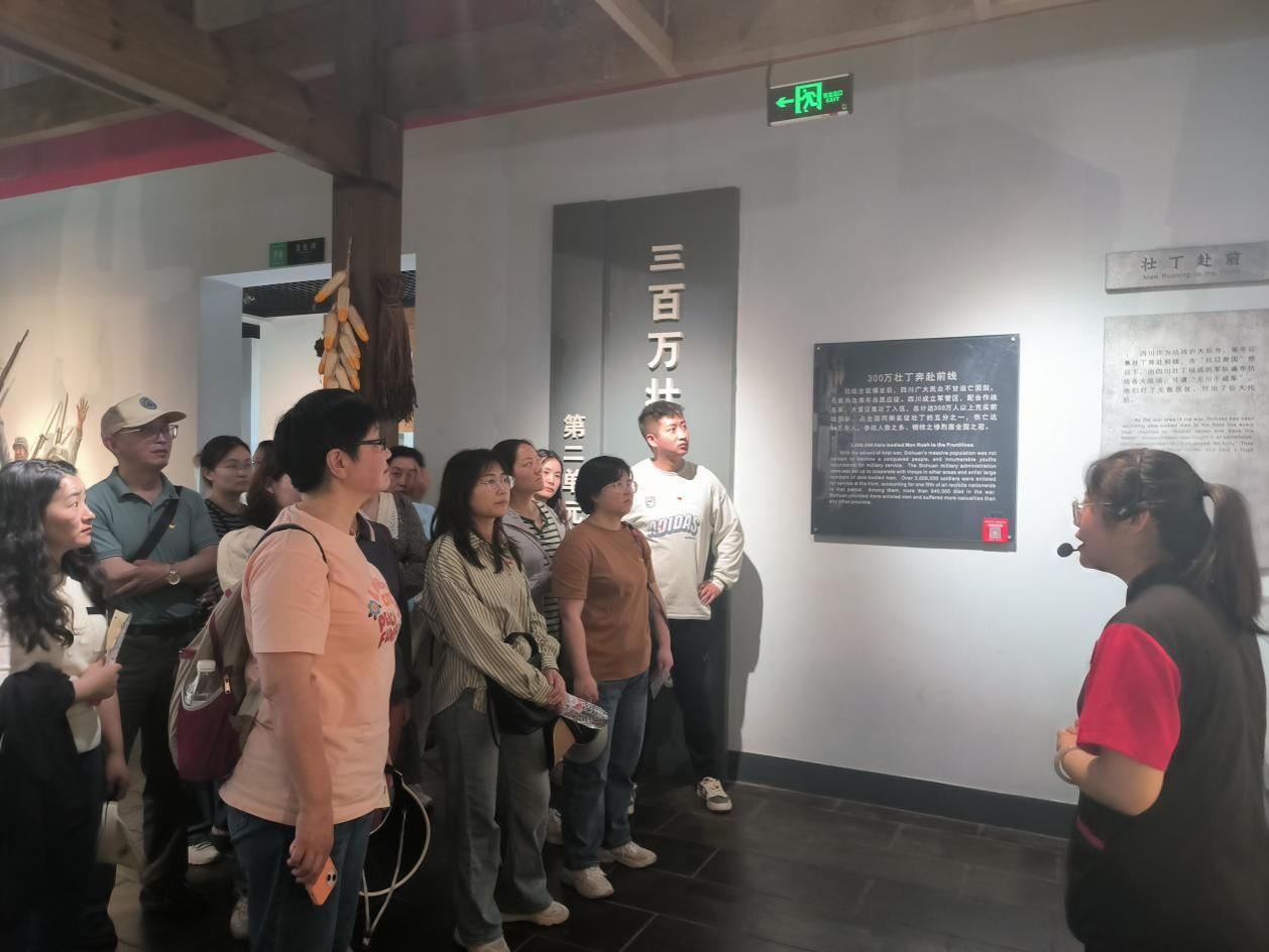 在讲解员的带领下,师生们参观了中流砥柱馆、川军抗战馆、国防兵器馆等场馆。通过丰富的文字记录、图像资料、历史遗物以及复原场景,深刻感受不同历史时空下先辈们不屈不挠的革命精神和自强不息的奋斗精神,回顾了中国共产党团结带领全国各族人民披荆斩棘、勇毅前行,为实现国家富强和人民幸福而不懈奋斗的百年历史。