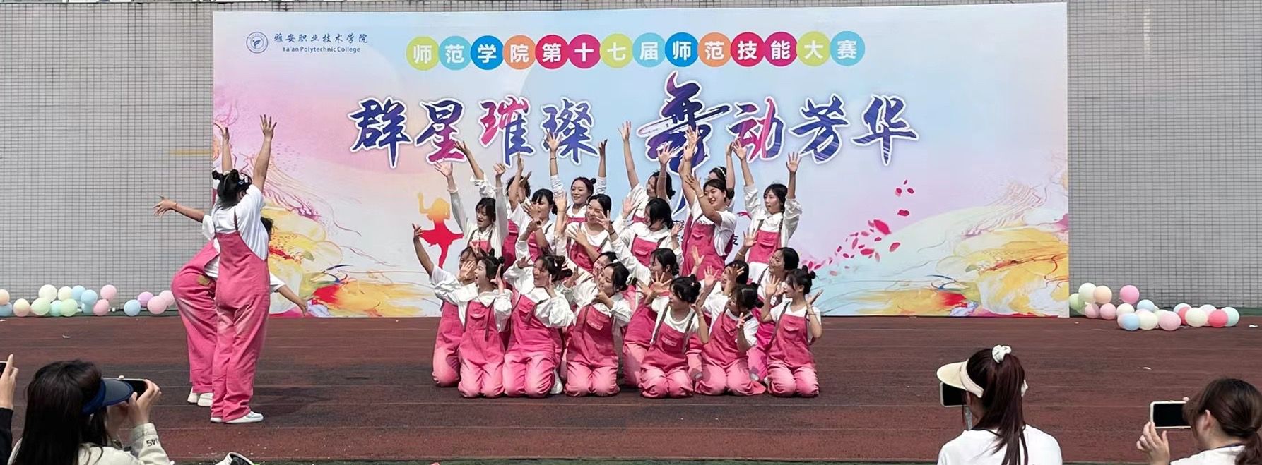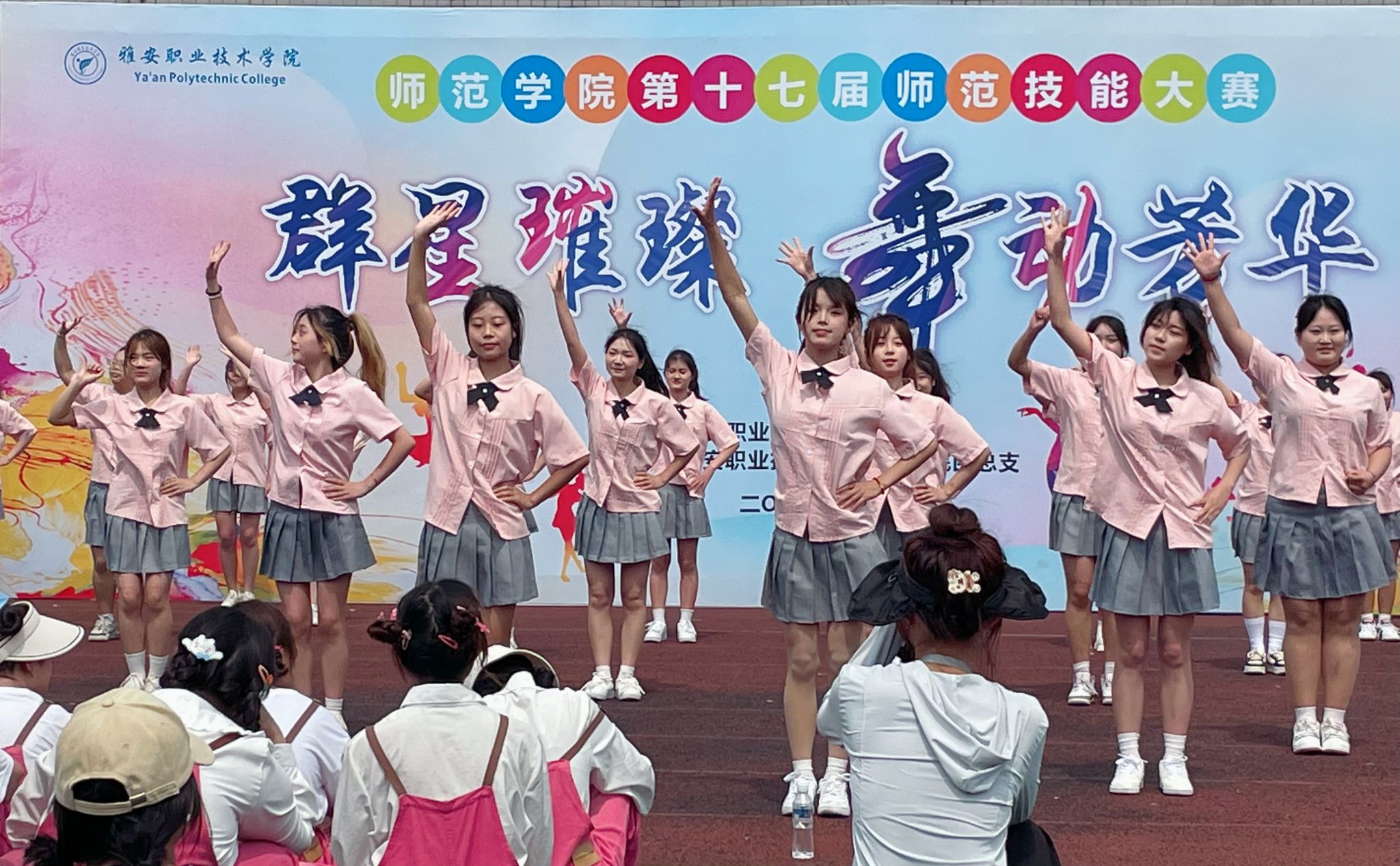 为全面贯彻党的教育方针,落实立德树人根本任务,发展素质教育,提高全体师范生幼儿舞技能水平, 4月16日,师范学院在青年路校区足球场举办了第十七届师范生技能大赛开幕式暨“群星璀璨,舞竞芳华”集体幼儿舞比赛。师范学院相关负责人、教师代表、全体辅导员及全院学生1000余人参与活动。