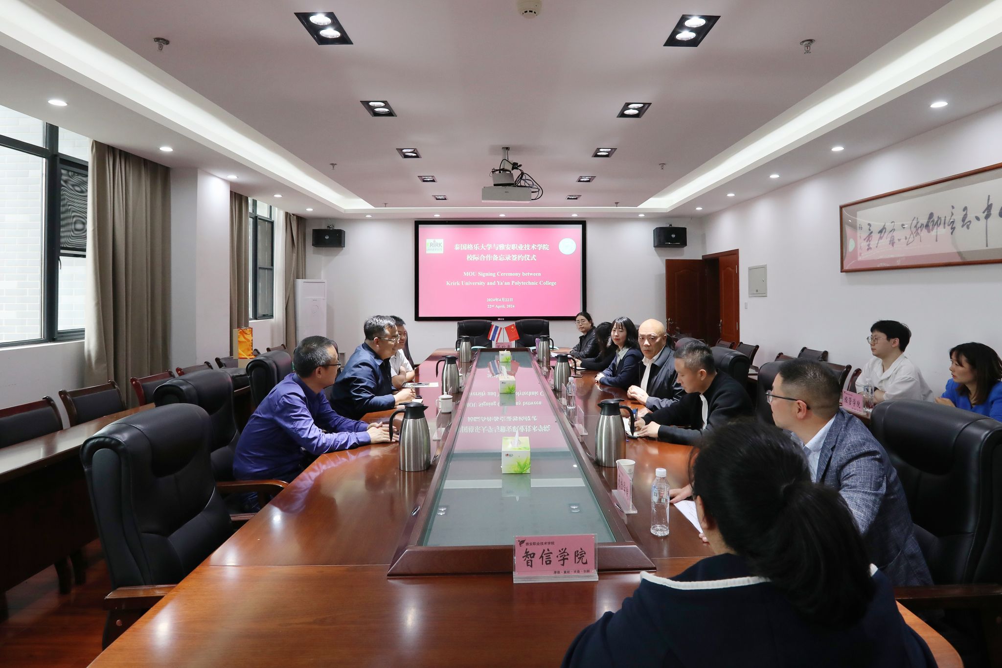 4月22日下午,泰国格乐大学国际交流处副处长姚毓忠一行访问beat365官网,并在经开校区综合楼518会议室签订校际合作备忘录。学校党委常委、副校长樊正康,相关二级单位负责人参加会议。
