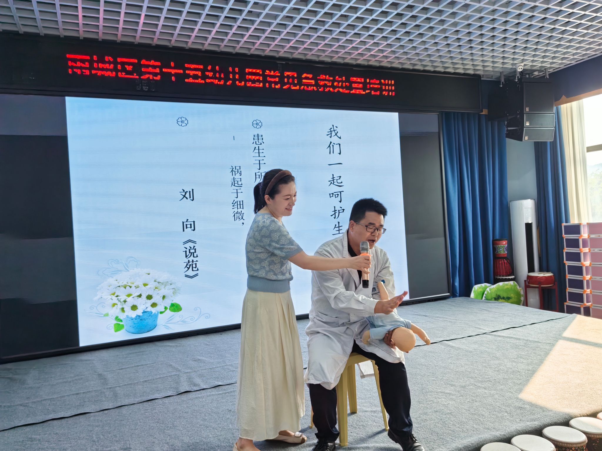 5月23日下午,应雅安实验幼儿园教育集团邀请,学校附属医院第一党总支第五党支部医护人员,走进雨城区第十五幼儿园,为雅安实验幼儿园教育集团(雨城区汉碑幼儿园、第九幼、第十五幼、第十七幼、第十八幼)的老师、保育员、安保人员,开展了关于儿童意外伤害防范与处理的培训。
