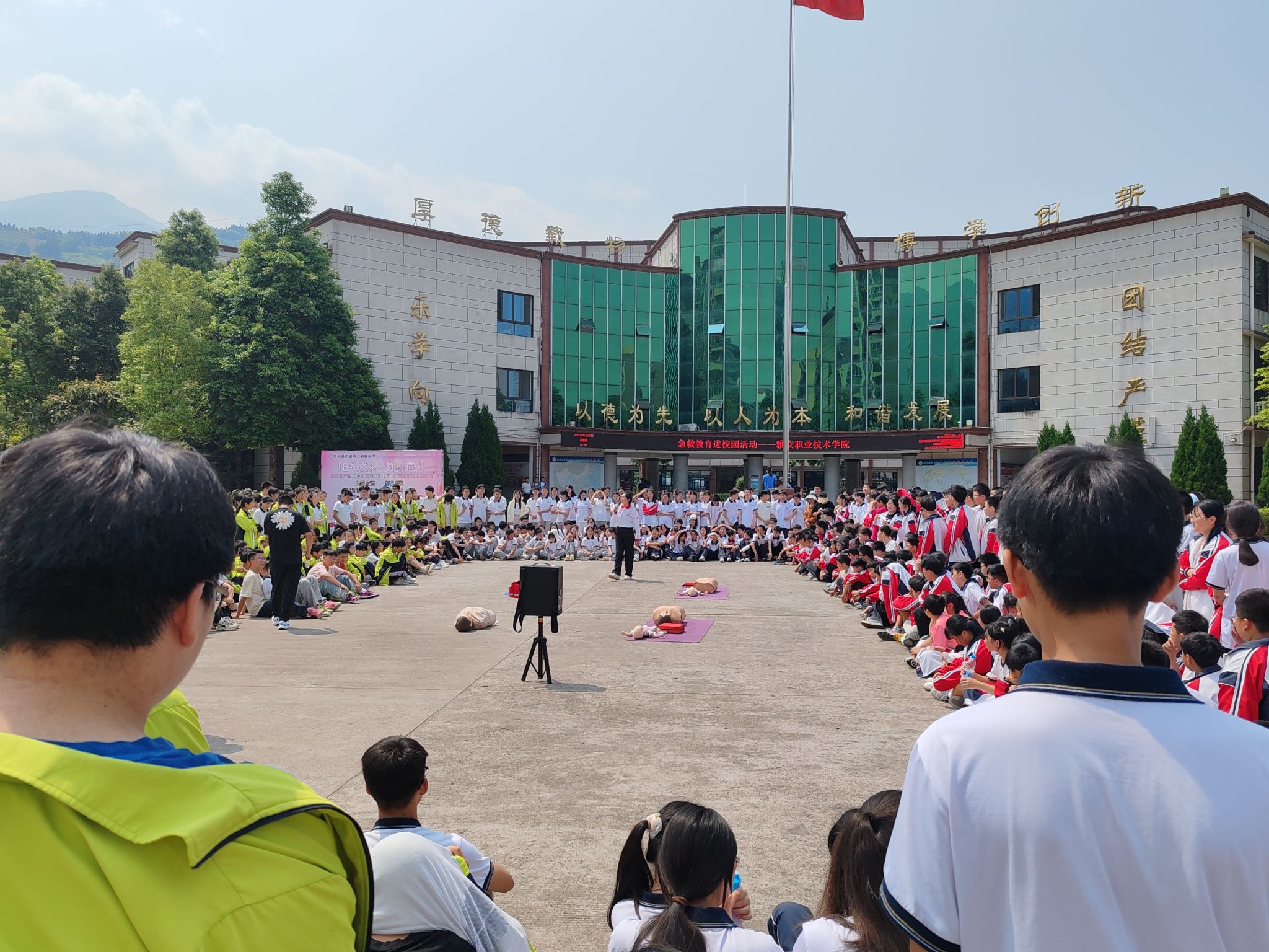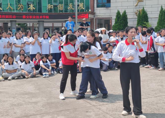 作为教育部第二批全国急救教育试点院校,为加强应急救护知识普及,提高广大师生应对突发意外伤害的自救互救能力,弘扬和传播“人道、博爱、奉献”红十字精神,5月23日,学校联合荥经县红十字会开展“守护生命·‘救’在身边”的主题活动,护理学院副院长张雪庆,教师黄丹到严道一中、严道二中开展应急救护知识培训,共计2087名学校师生参加培训。