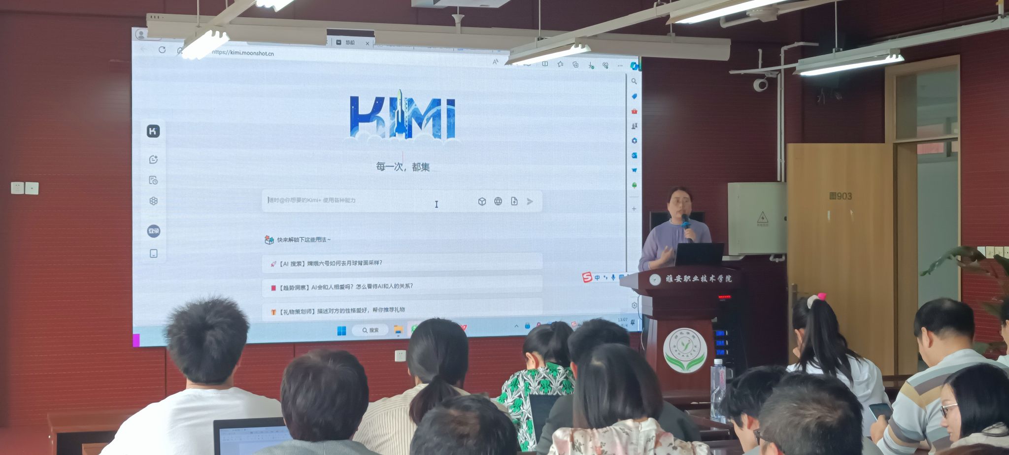 冯良亮充分利用前期外出培训的成果,向教师们详细介绍了多种适用于教学的AI工具,包括Kimi、Xmind、智谱清言等,并通过现场演示,展示了AI工具的基本操作、教学场景中的应用实例,以及如何根据不同专业需求和教学目标,灵活调整和运用这些AI工具。