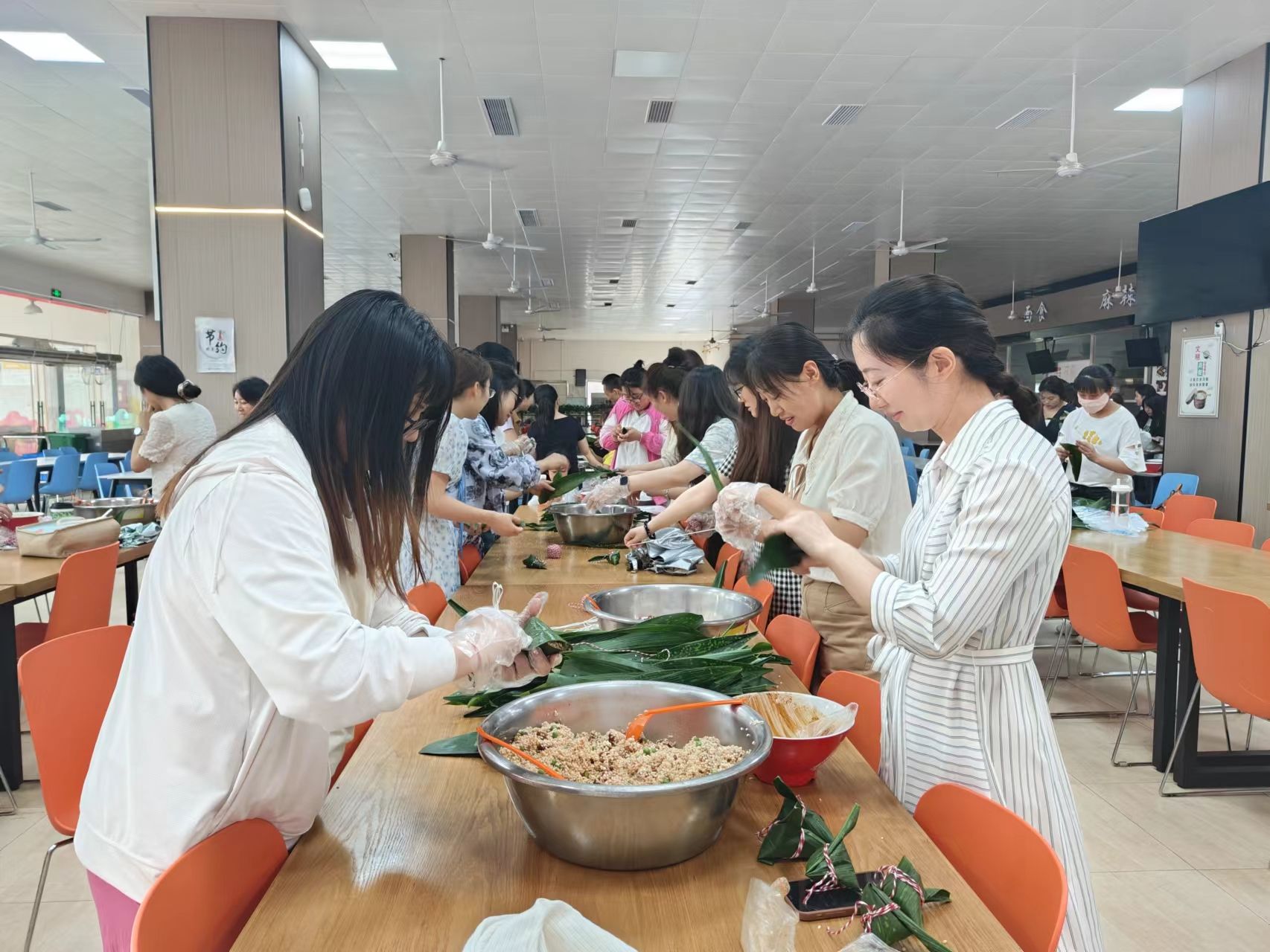 一年一度的端午节来临之际,为进一步弘扬中华优秀传统文化,营造温馨浓厚的节日氛围,6月6日下午,学校工会在经开区校区熊猫餐厅开展了“浓情端午•粽享欢乐”为主题师生包粽子活动,80余名师生代表参加了此次活动。