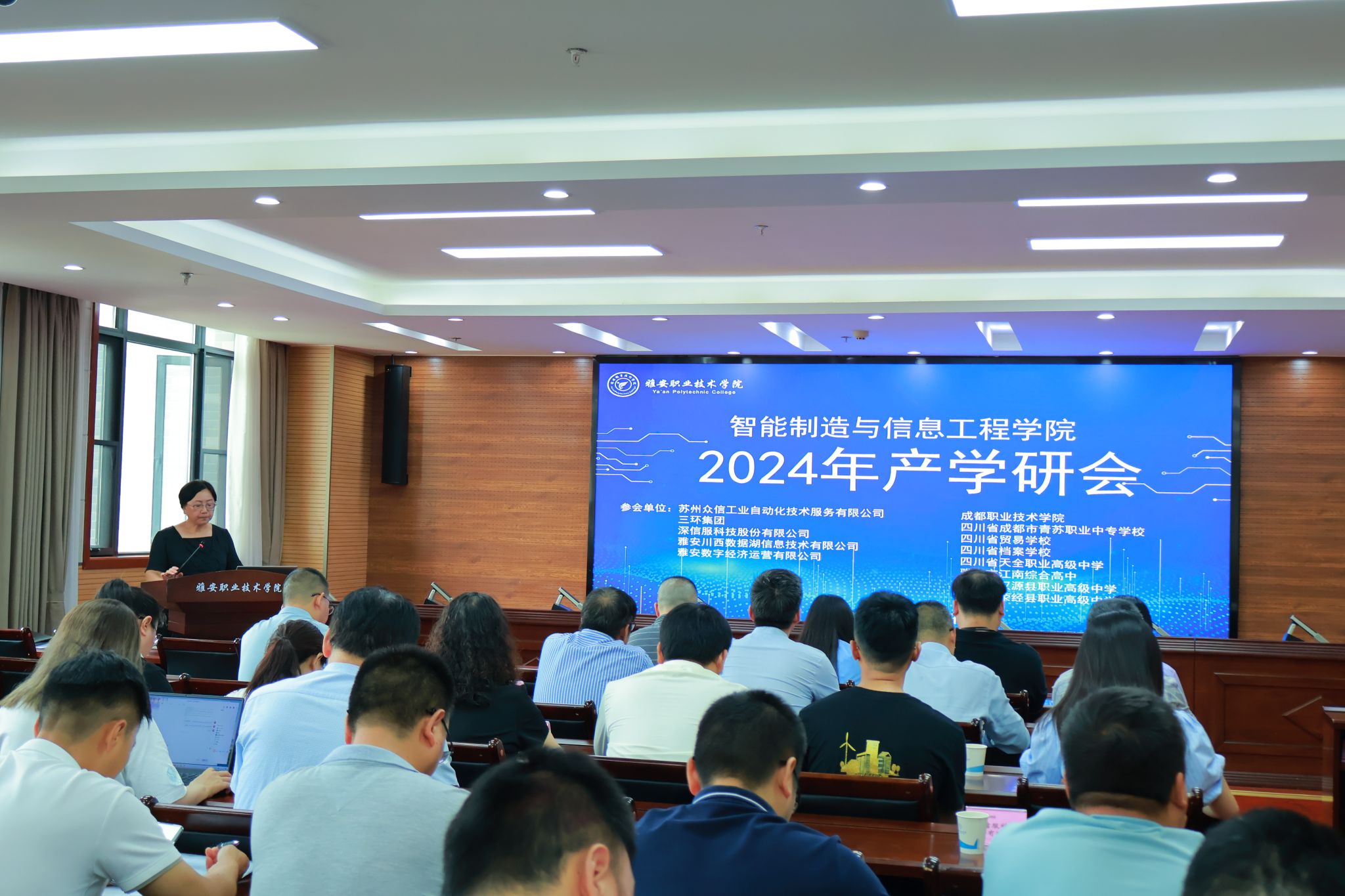 6月28日,学校智能制造与信息工程学院(以下简称:智信学院)在学校经开区校区召开了2024年产学研会议。博众精工科技股份有限公司、三环集团、深信服科技股份有限公司等多家行业头部企业,雅安市汉源县职业高级中学等区域内外10所中职院校及成都职业技术学院共计20多名校企来宾与智信学院全体专业负责人参会。会议由智信学院副院长吕波主持。