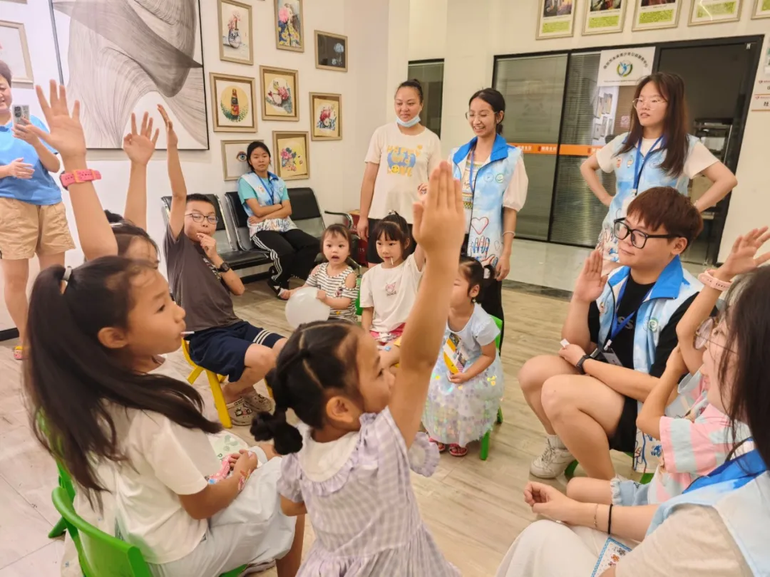 与此同时,学校师范类专业学生结合“童伴之家”“七彩假期”等社会实践专题,聚焦农村留守儿童、寄宿儿童、困境儿童心理健康教育,开展志愿服务活动。7月12日,beat365英国官方网站向阳而“声”志愿服务队来到雨城区顺路社区,从心理学视域心声、心生、心灵、心光四个角度出发,通过声音的力量,引导孩子们说出心里话、唱出心中情,增强自信,塑造积极向上的心理品质。该团队已成功入选由团中央青年志愿者行动指导中心、中国青年志愿者协会秘书处指导的2024年关爱行动“七彩假期”志愿团队项目。