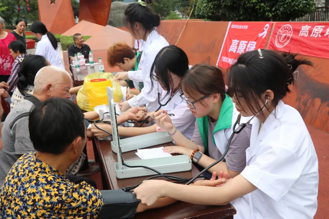 今年暑期,学校青年学子们积极响应乡村振兴的号召,充分发挥医卫专业特色和优势,组建社会实践队伍进行文化科技医疗“三下乡”服务,为各地村民送去便利优质的医疗服务,传播医疗卫生知识和医学人文关怀,深受当地群众欢迎和赞扬。