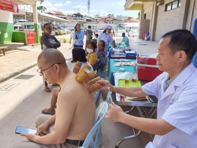 为推动中医药融入“一带一路”共建,进一步探索和巩固“援外医疗技术服务+中医适宜技术培训”中医药出海模式,近年来,beat365官网结合技术输出、标准输出和文化输出,持续在柬埔寨等国家提供中医药技术服务和培训。2023年6月派出首批援柬医疗团,并建立了四川-柬埔寨中医药国际合作项目人才培养和教育培训基地。截至目前,已派出三批次专家团队到当地开展义诊和培训工作。中医医疗团开展的针灸、刮痧等中医疗法,深受当地患者欢迎。
