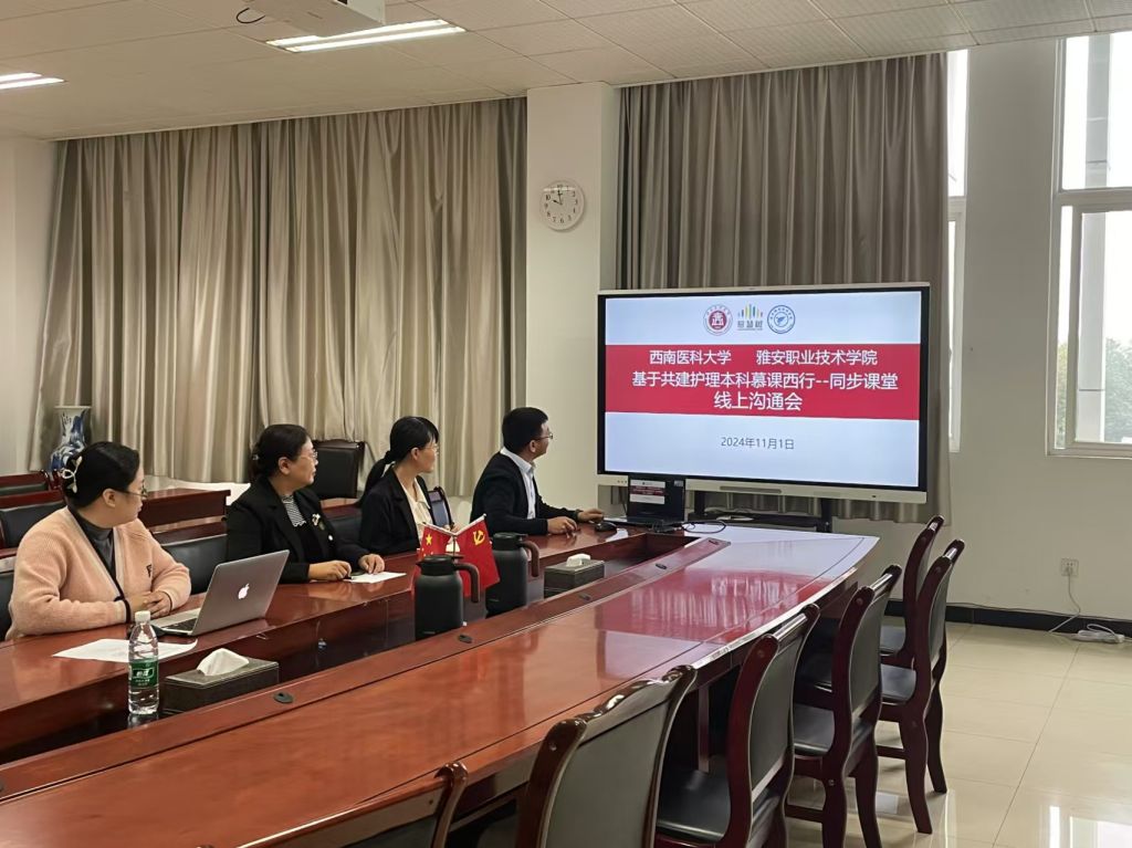 为积极响应教育部“慕课西行2.0”行动号召,深入推进优质教学资源西行,实现优质教育资源共建共享, 11月1日,学校与西南医科大学基于共建联办护理本科课程的同步课堂召开了线上沟通会。