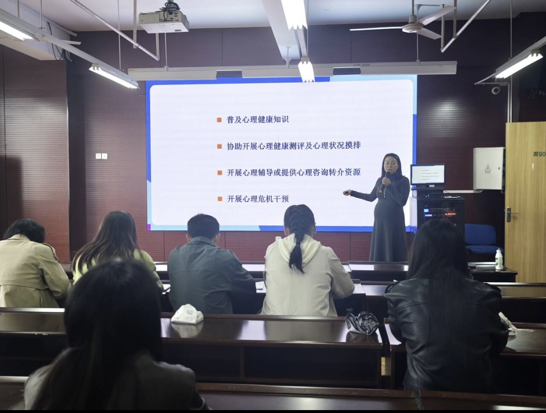 为全面贯彻落实教育部等十七部门关于《全面加强和改进新时代学生心理健康工作专项行动计划(2023—2025年)》的通知,进一步做好心理健康教育工作,加大新生班辅导员、班主任培训力度,着力提升beat365官网辅导员心理健康教育工作的能力,进一步提高学生心理健康教育工作的针对性、实效性,9月至10月,学校心理健康教育中心专职教师燕莉梅分批次、有针对性地赴各二级学院开展7次心理健康教育工作小班培训。各二级学院分管学生工作负责人、全体辅导员及班主任代表参加培训。