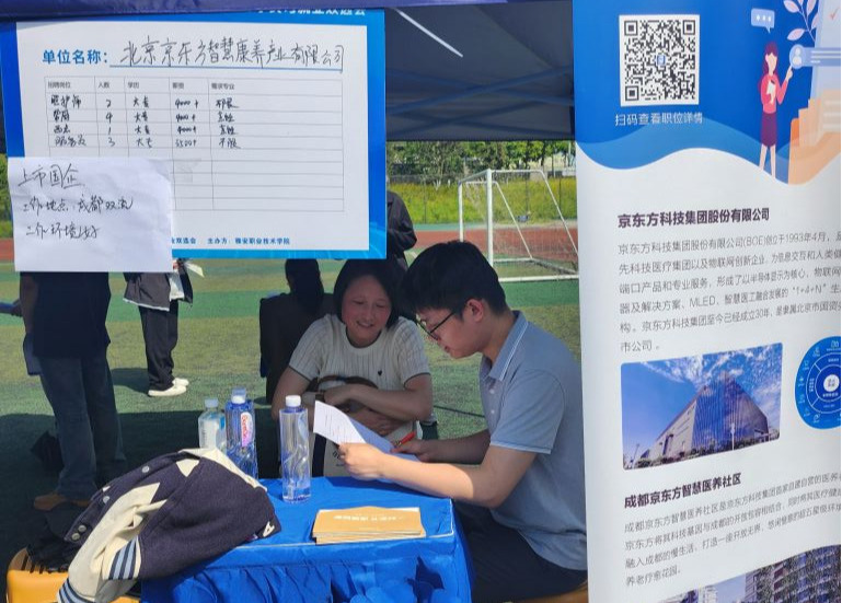 4月17日至30日,学院邀请重庆海康威视科技有限公司、雅安七彩麦奇文化传播有限公司等30余家优质企业入校选拔实习生,同步开展“校企协同育人研讨会”。企业提出“人工智能+制造”“绿色能源技术”等前沿领域人才缺口,专业负责人邀请企业专家共同设计制定“岗位能力分析表”,明确核心技能指标。4月18日,专业负责人深入青年路校区双选会现场,与50余家企业面对面交流,为后续实践教学改革奠定基础。