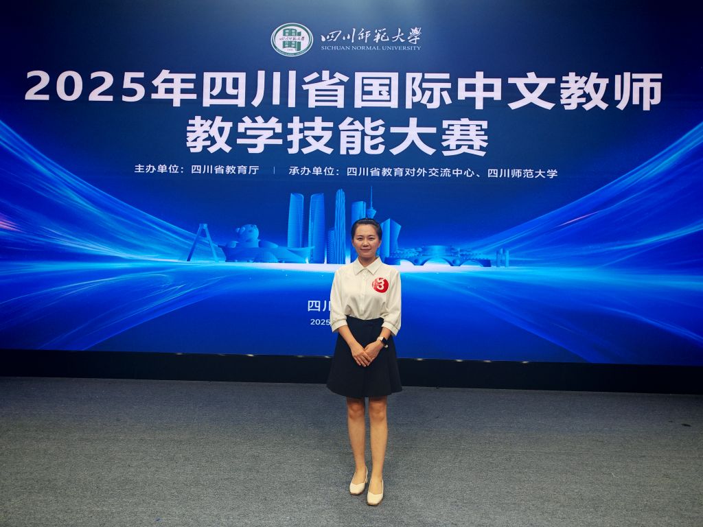 近日,四川省国际中文教师教学技能大赛圆满落幕,学校师范学院教师舒迪凭借扎实的专业功底、出色的教学能力和稳定的现场发挥,荣获省级二等奖。