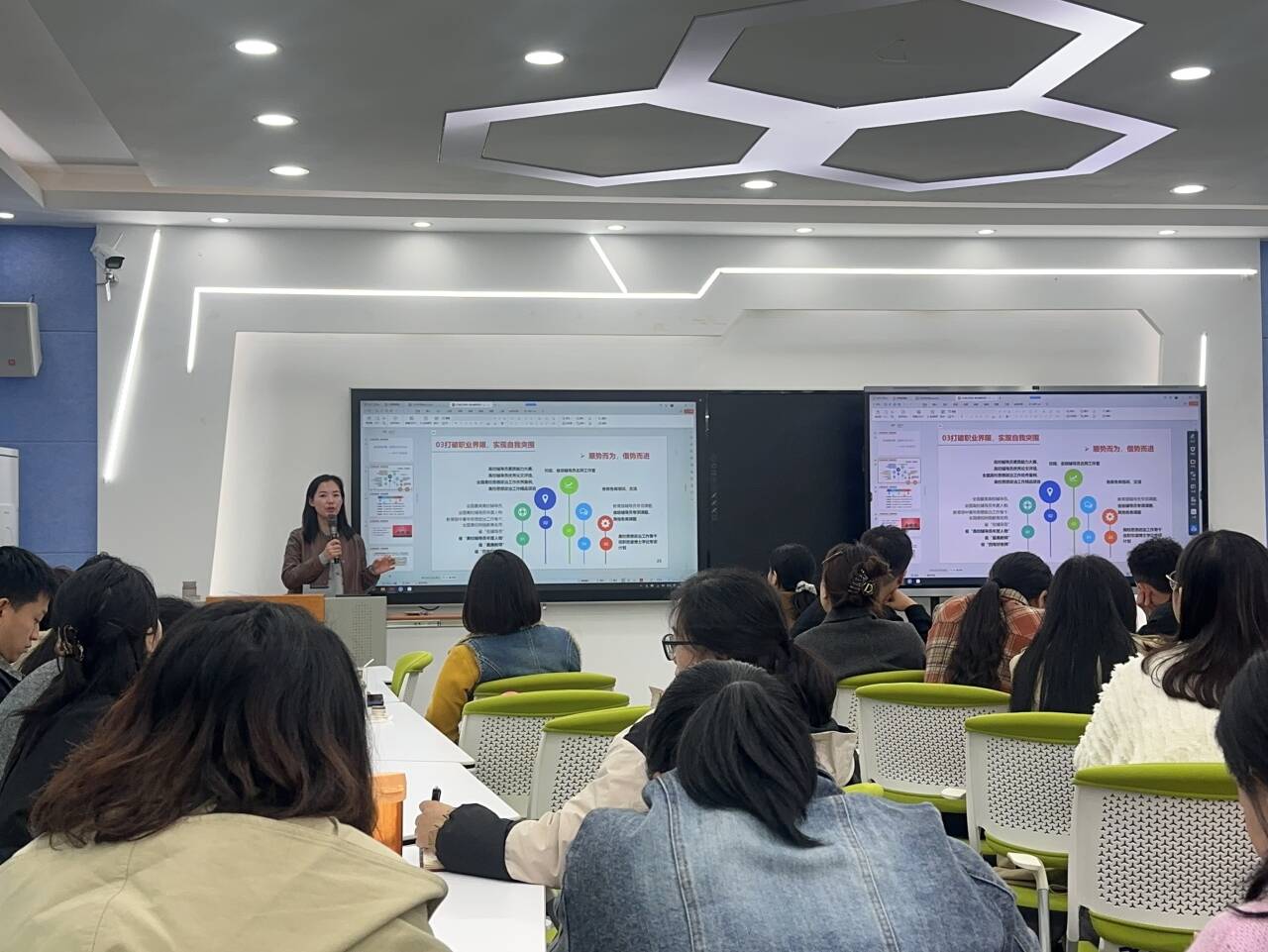 10月28日,学生工作部于经开区校区2201智慧教室开展辅导员赋能提升计划——辅导员素质能力大赛专题提升培训。学校党委常委、副校长陈冬冬出席并讲话。活动特邀第八届全国高校辅导员素质能力大赛一等奖获得者、四川邮电职业技术学院的王丽英副教授担任主讲。学生处负责人、各二级学院(副)书记以及30名一线专职辅导员参加培训。